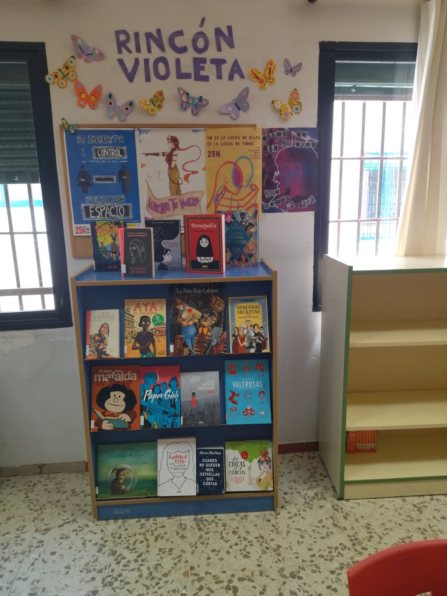 Desde el Plan de Igualdad hemos venido colaborando con el Departamento de Biblioteca organizando el rincón violeta como una más de las temáticas mensuales que este departamento expone a lo largo del curso.
